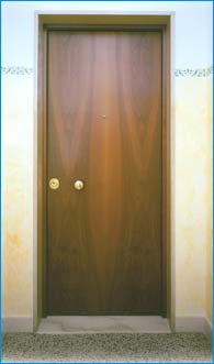 con due doghe verticali in lamiera 12/10. Il pannello battente viene